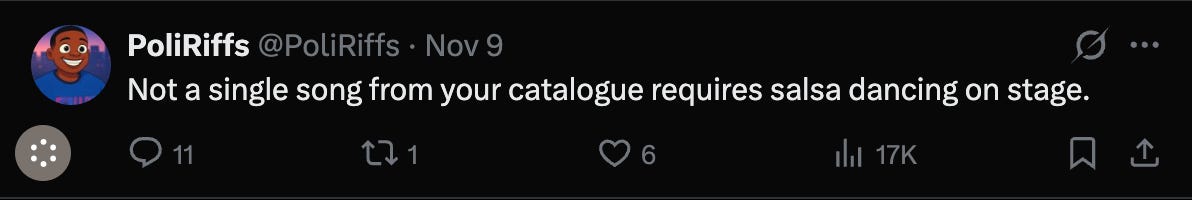 During his Red Bull Symphonic performance, there was a moment he chose to dance Salsa with a female dancer. His own song. His own stage. His own artistic interpretation.